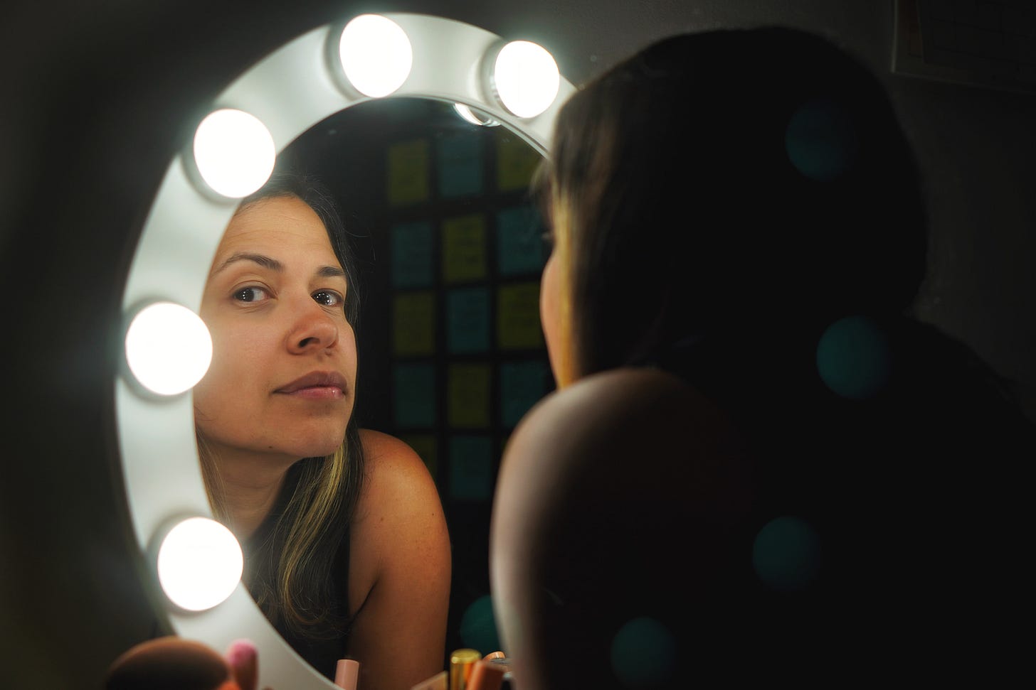 As I sat down at my vanity to get ready for the day, I looked at my reflection in the mirror. My eyes stared back at me, tired and unhappy. I played with my smile, turning it on and off like a light switch, practicing for the day’s performance.