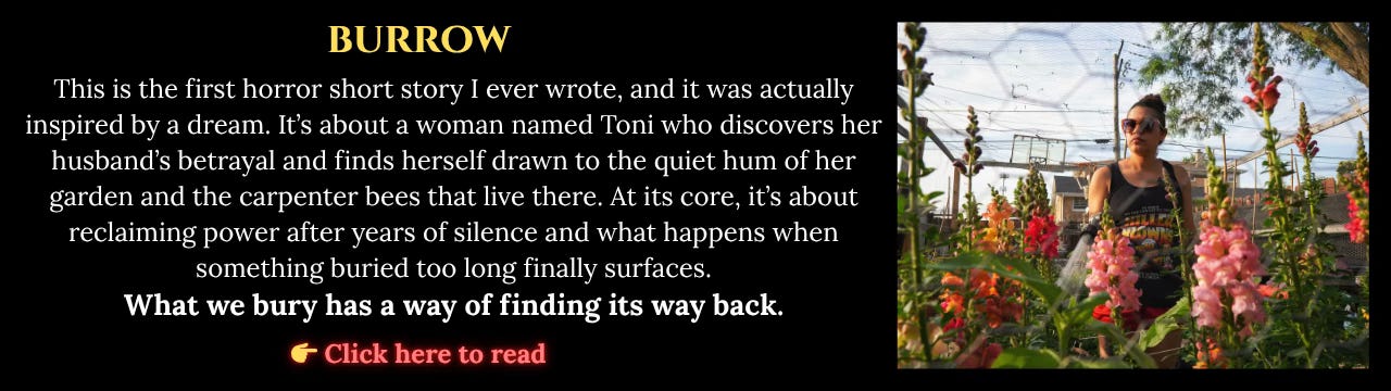 Thank you for making it all the way to the end of my haunted little newsletter. If you enjoyed it, I’d love if you replied back, shared it with a friend, or just let me know what you’re reading and watching. Your support means the world to me as I start this author journey.